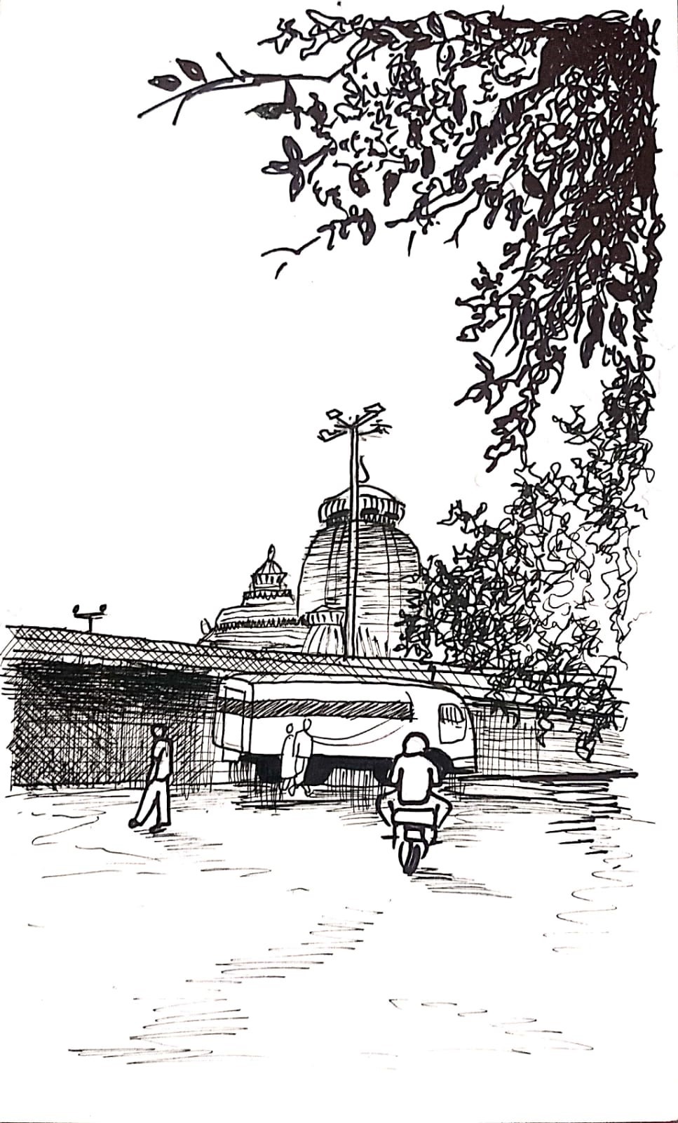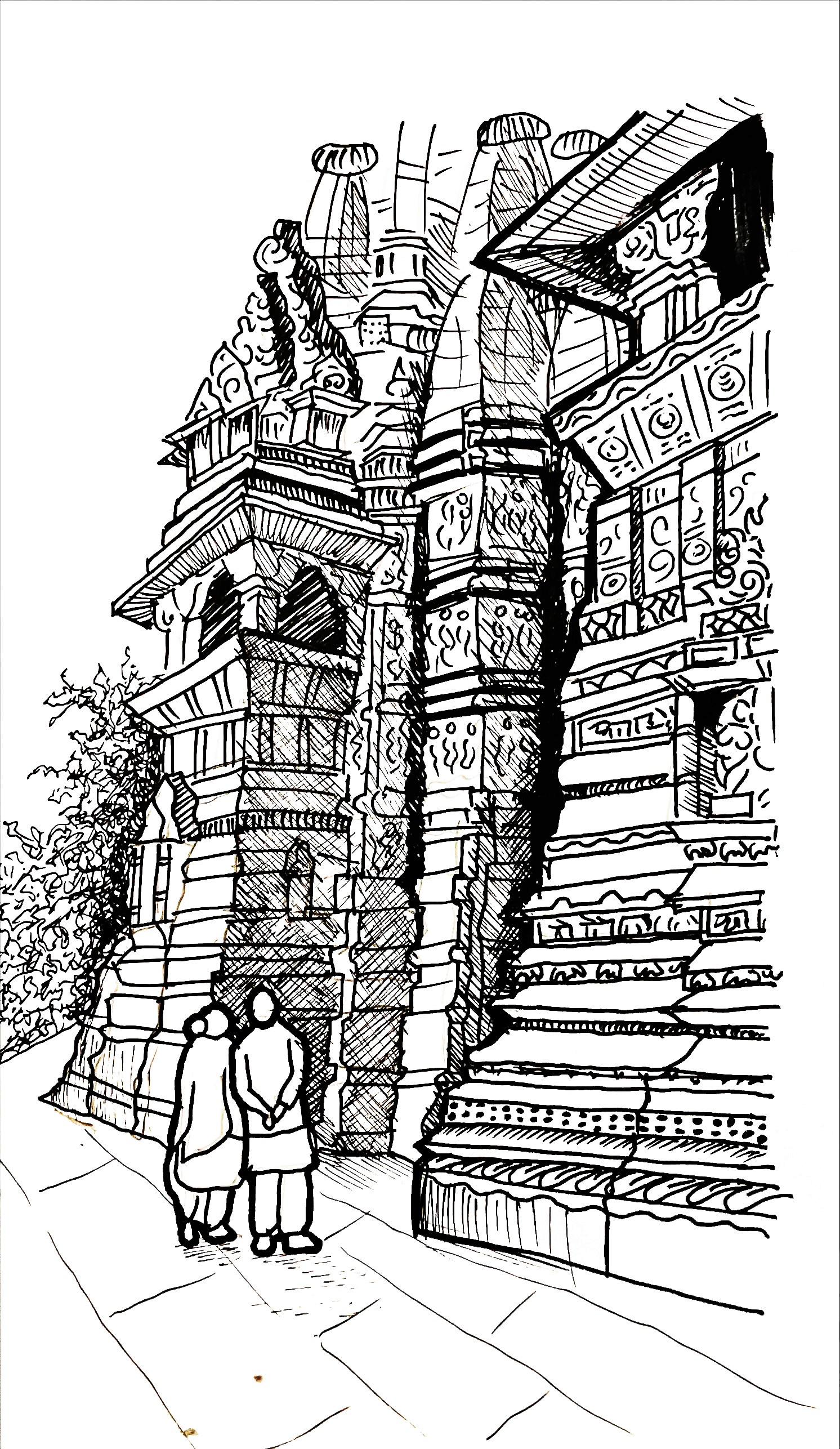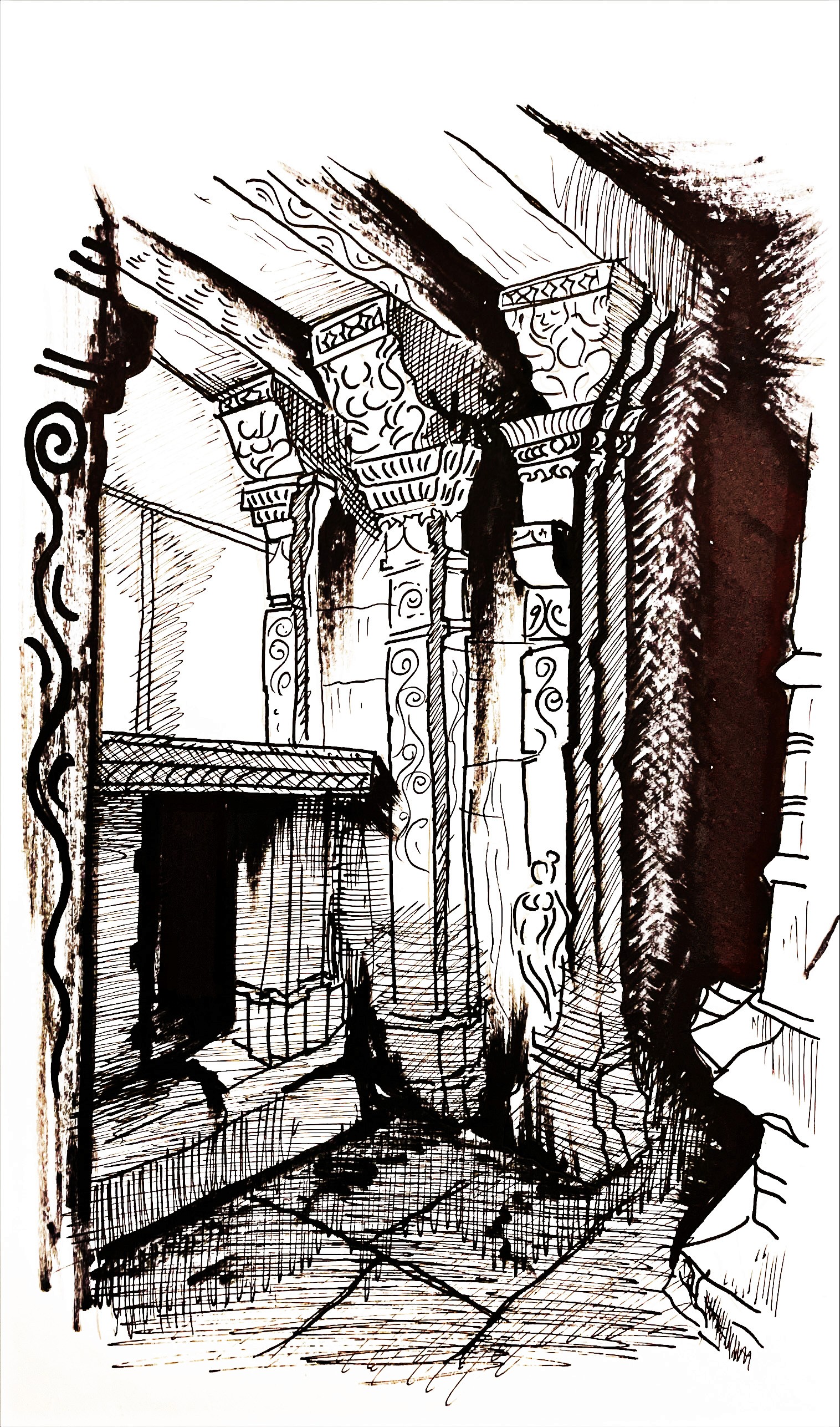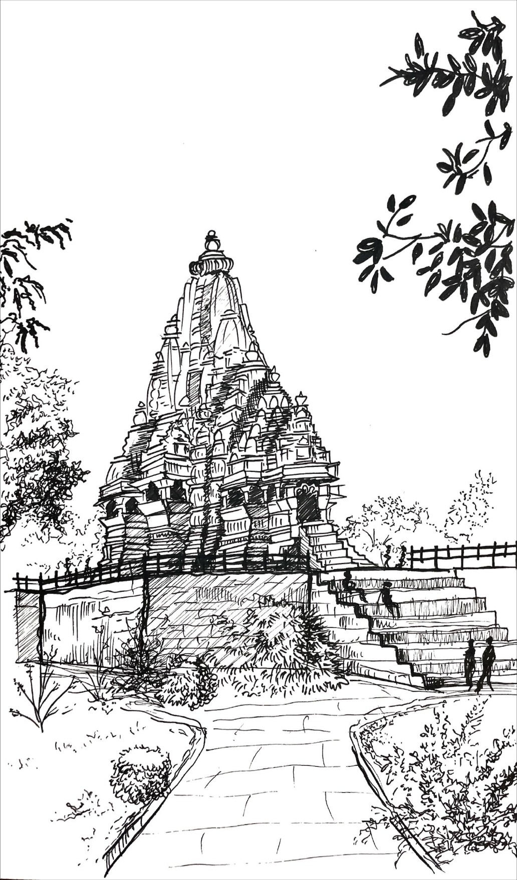Hand-drawn sketches in black and white, capturing heritage with simple, precise strokes