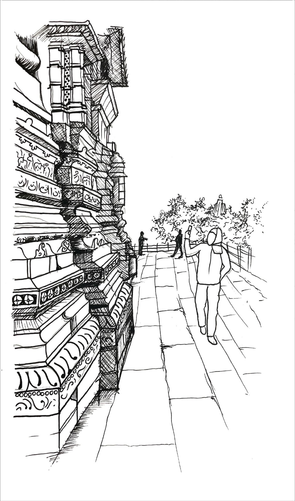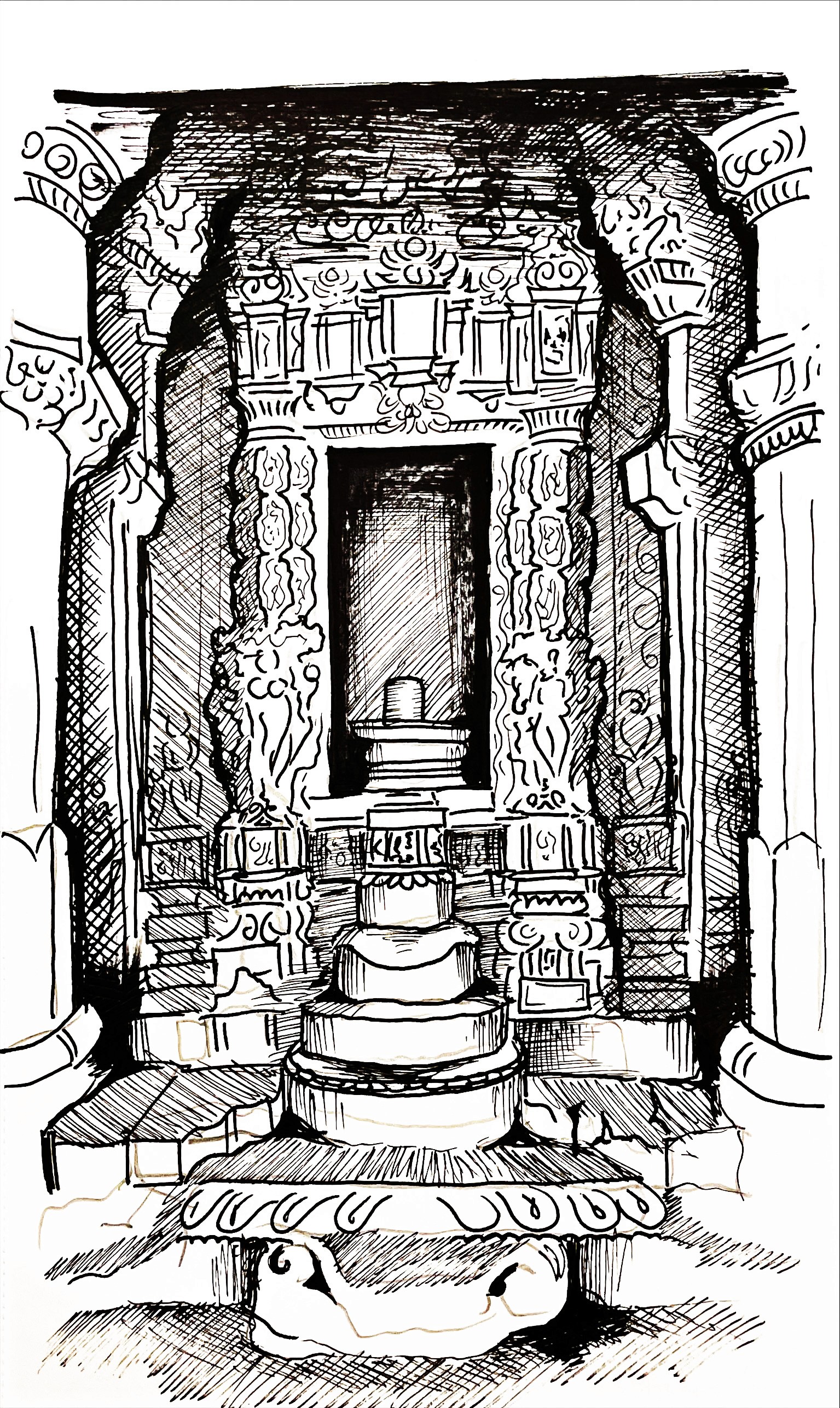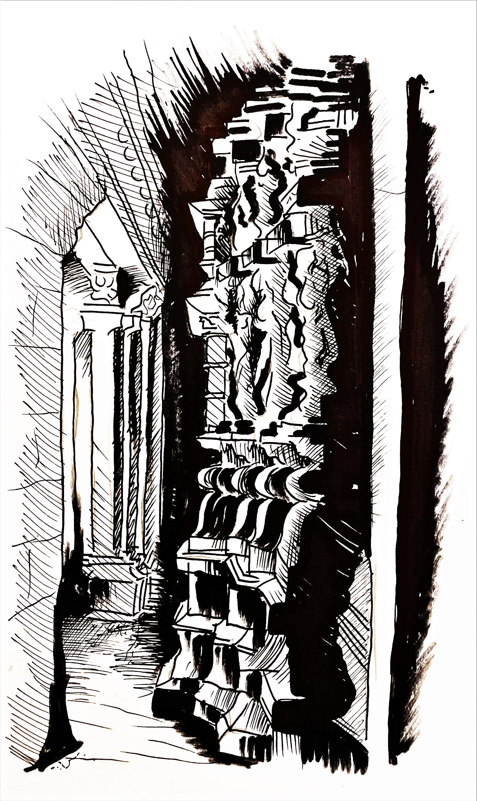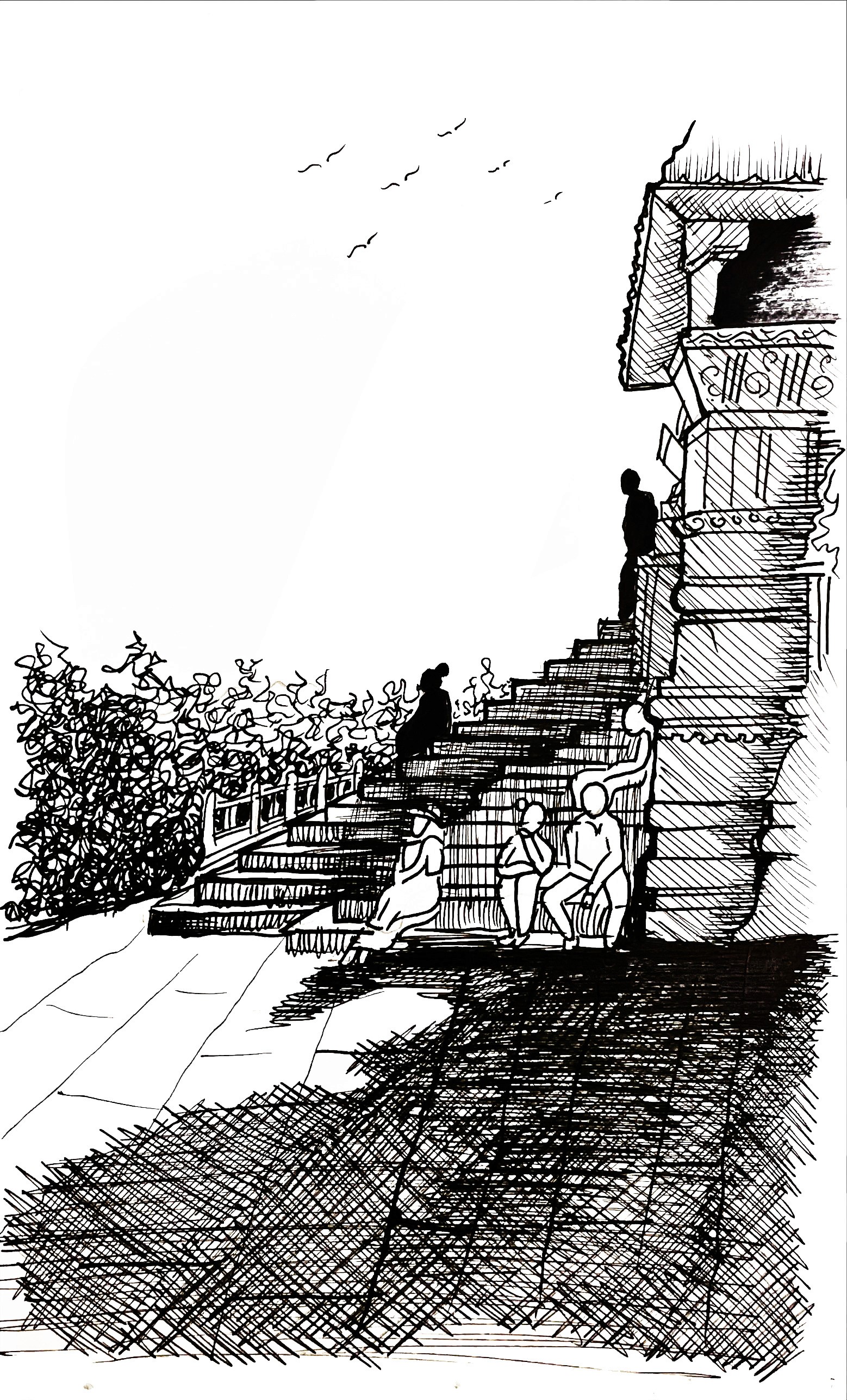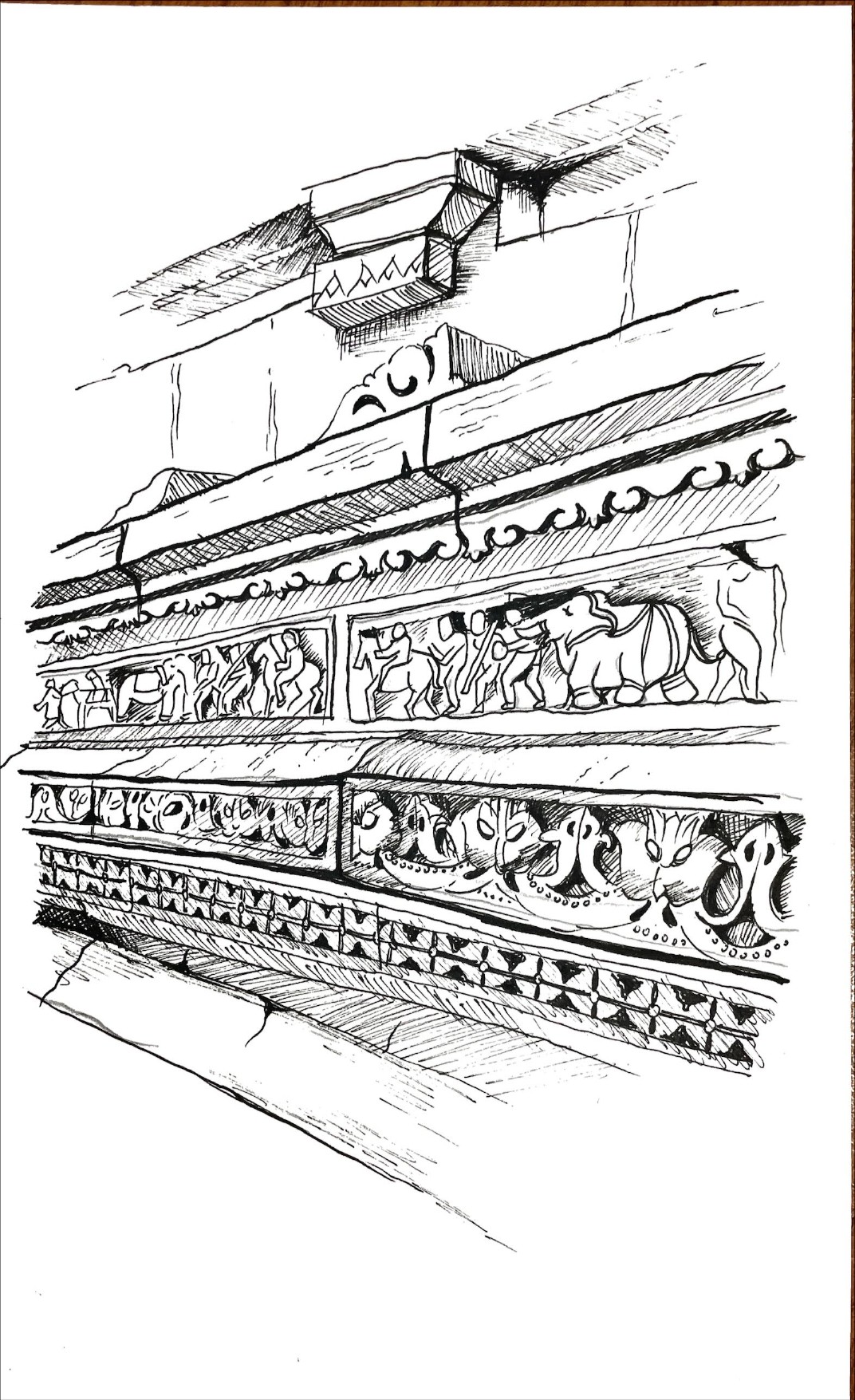 Hand-drawn sketches in black and white, capturing heritage with simple, precise strokes