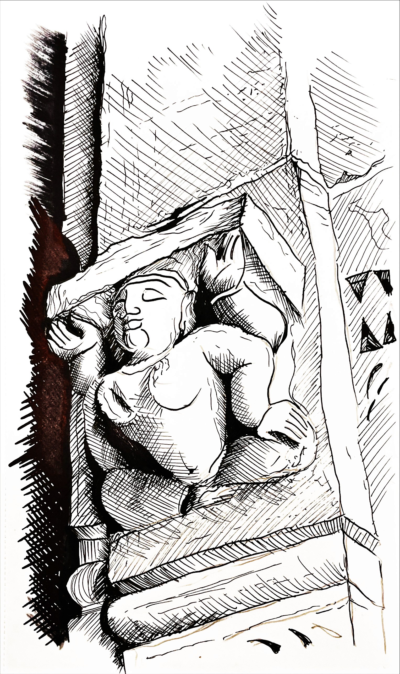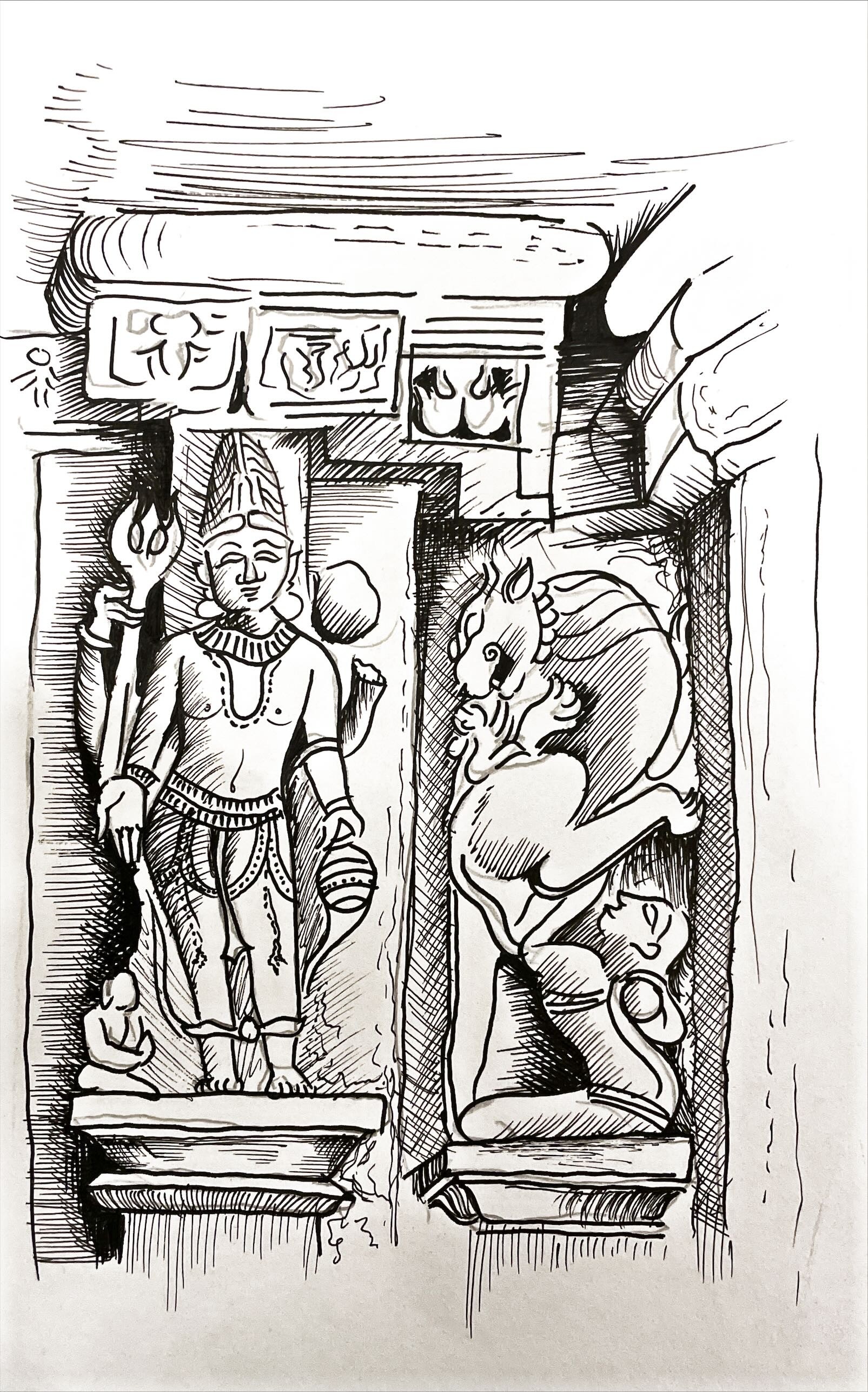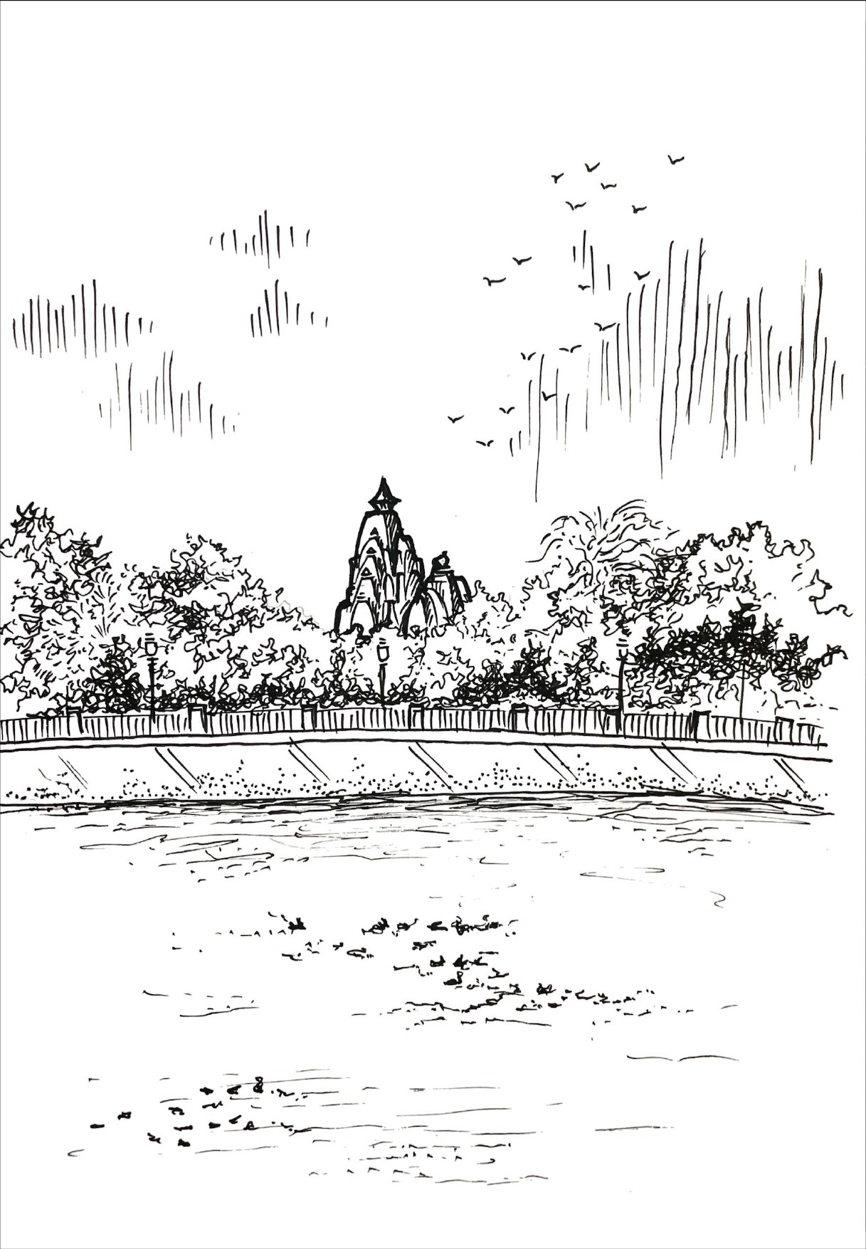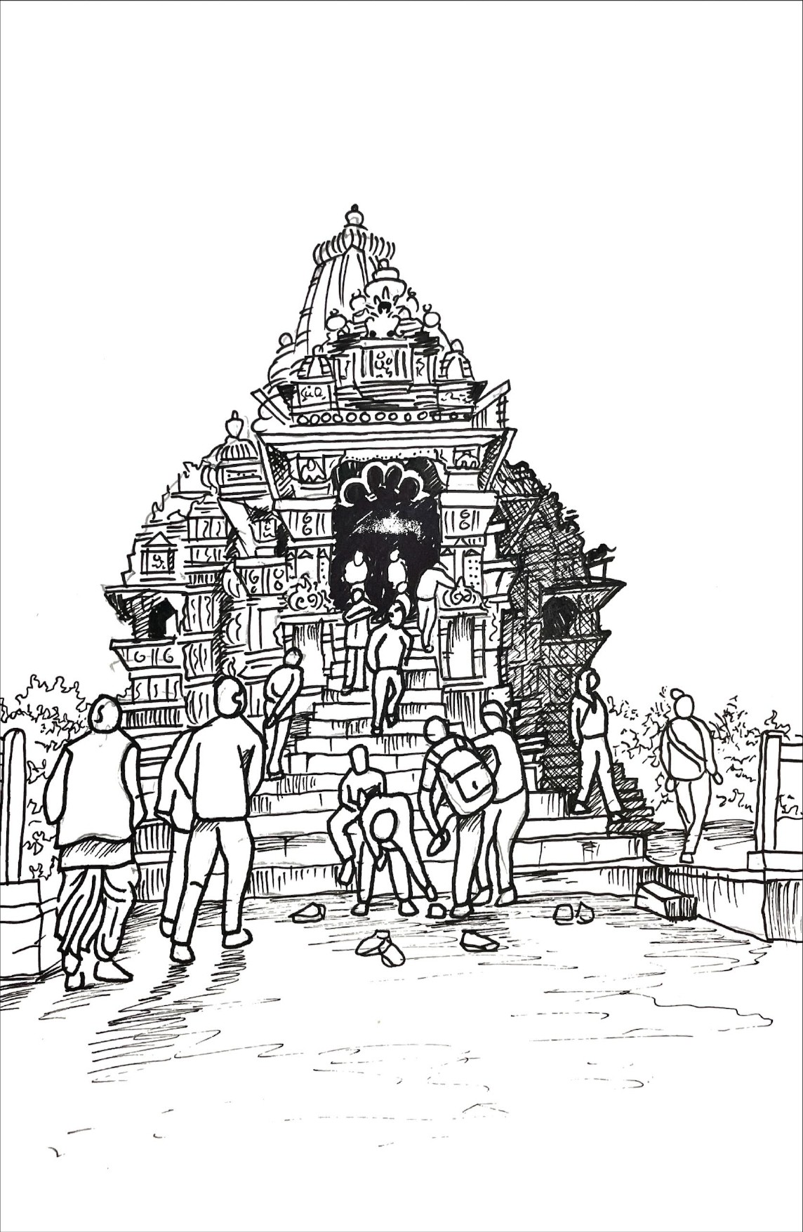 Hand-drawn sketches in black and white, capturing heritage with simple, precise strokes